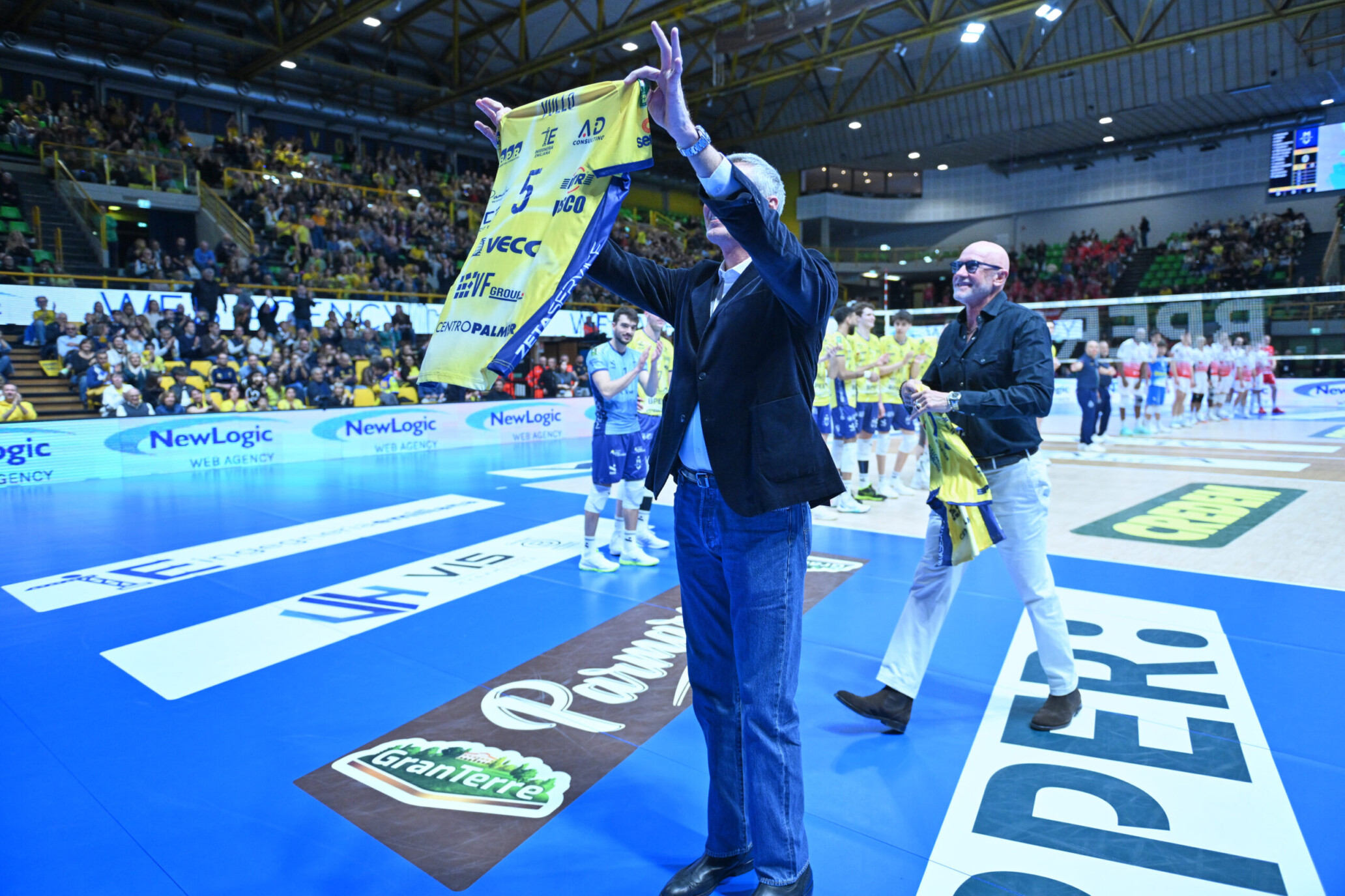 Accolti dal pubblico del PalaPanini con un lungo e caloroso applauso, Bertoli e Vullo hanno vissuto da vicino l’atmosfera della gara, visitando anche la mostra “Since 1966”. Nel prepartita, il Presidente Giulia Gabana e il patron Christian Storci hanno consegnato ai due campioni la maglia della Valsa Group Modena: la numero 4 a Bertoli e la numero 5 a Vullo, in un momento ricco di emozione e significato.