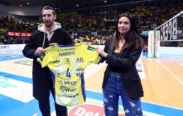 Prima del match contro Rana Verona, Antonio Pergreffi è stato salutato e applaudito dai 4000 spettatori presenti sugli spalti del PalaPanini. Nell’occasione, il presidente di Modena Volley Giulia Gabana ha consegnato una maglia da gioco all’ex capitano del Modena Fc, che in gialloblù ha collezionato oltre 130 presenze e guidato la squadra verso il ritorno in Serie B. Quello tra Modena Volley e Modena Fc è ormai un connubio consolidato e soprattutto un’amicizia solida tra due realtà molto importanti per il territorio locale. Oltre a Pergreffi, presso l’impianto di Viale dello Sport per la gara tra Modena e Verona erano infatti presenti il difensore Davide Adorni, il centrocampista Alessandro Sersanti e il responsabile del settore giovanile Davide Caliaro.