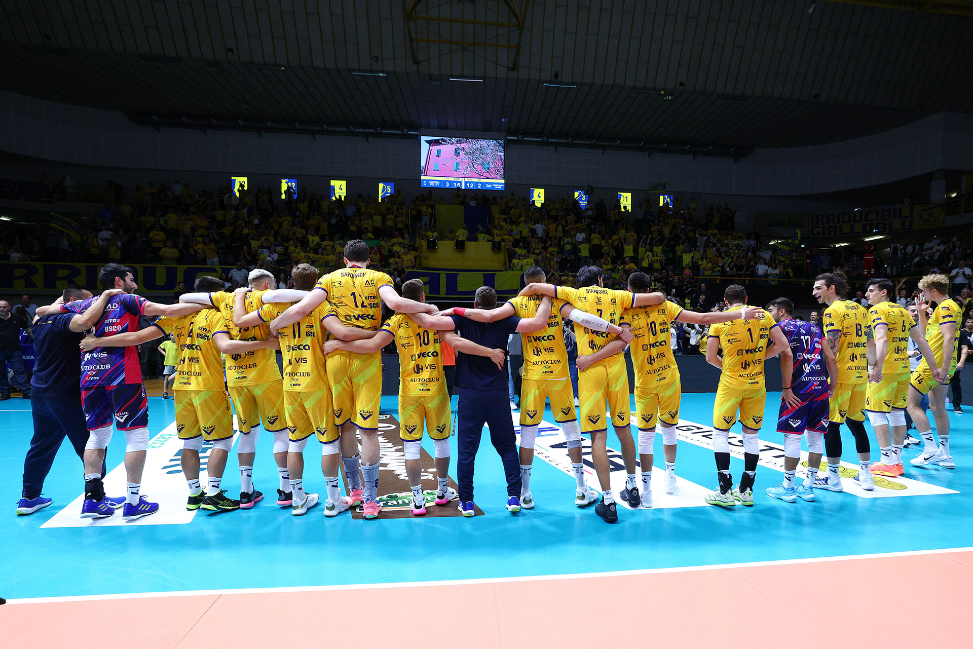 Nel prepartita la tifoseria gialloblù ha ricevuto il premio Jimmy George, assegnato dalla Lega Pallavolo ai supporters più corretti – e a parità di punteggio ai più numerosi – della stagione 2022/2023. Al PalaPanini oggi era presente anche l’ex Presidente di Modena Volley Giovanni Vandelli, salutato al microfono dallo speaker prima dell’inizio del match.