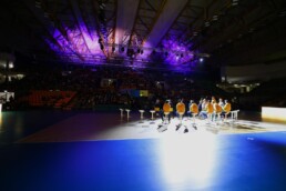 La presentazione si è poi conclusa con il saluto e i ringraziamenti del Direttore Generale Andrea Sartoretti e il consueto ingresso in campo di tutto il settore giovanile e lo staff di Modena Volley.