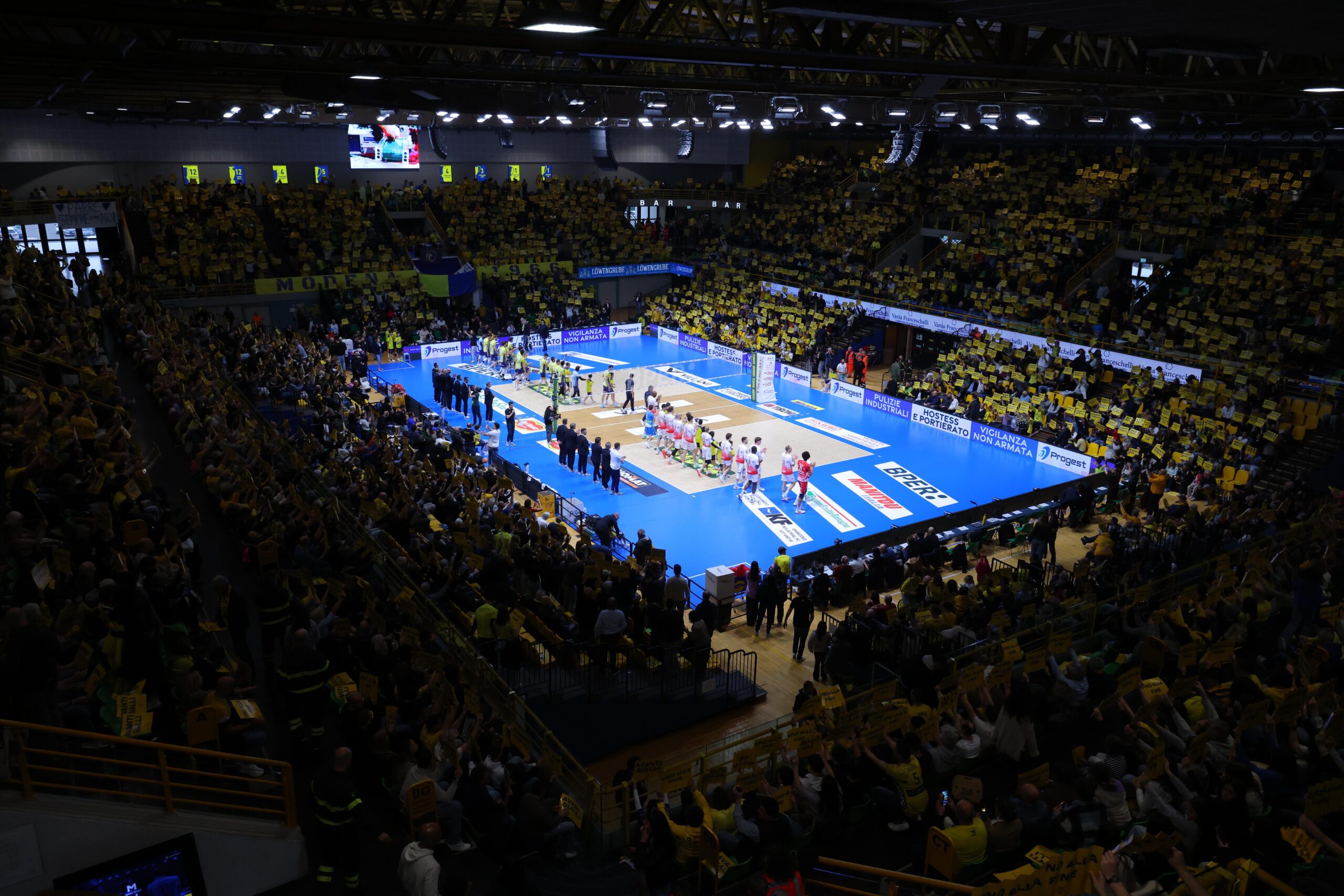 Modena parte con il sestetto composto da Tizi-Oualou-Buchegger in diagonale principale, Davyskiba-Luca Porro di banda, Sanguinetti-Mati al centro con Perry libero. Piacenza risponde con Paolo Porro al palleggio, Bovolenta opposto, Mandiraci-Gutierrez martelli, Simon-Comparoni centrali con Pace libero. Inizio equilibrato nella bolgia del PalaPanini, primo tempo di Sanguinetti e 8-8 dopo i primi scambi. Piacenza alza la voce, ace di Mandiraci per il 10-14 e timeout Giuliani. Il numero nove biancorosso è assoluto protagonista, sia in difesa che in battuta. Modena prova a rientrare nel set, ma non basta: muro di Simon su Buchegger per il 18-25 e 0-1. La formazione ospite non molla di un centimetro nemmeno in avvio di secondo parziale, ace di Gutierrez per il 6-9 e timeout Giuliani. I gialloblù rispondono però presente, attacco vincente di Buchegger e parità ritrovata sul 13-13. Modena cerca il primo allungo, primo tempo di Sanguinetti e 18-17. Si prosegue punto a punto, sono i padroni di casa a pareggiare i conti con Buchegger protagonista: 25-21 e 1-1. Modena comincia il terzo parziale con il piede giusto, muro di Buchegger su Mandiraci e 10-7 con timeout Boninfante. Piacenza risponde colpo su colpo, Mandiraci a segno e parità a quota 11. Si lotta in ogni azione: così come successo nel primo set, Mandiraci diventa assoluto protagonista e riporta avanti la formazione di Boninfante. 20-25 e 1-2. Piacenza si mantiene avanti anche nei primi scambi del quarto parziale, 9-11 e timeout Giuliani. Simon e compagni difendono il vantaggio fino alla fine, vincono set (20-25) e match (1-3). La straordinaria corsa di Modena si ferma dunque in gara 5: ora spazio ai playoff quinto posto.