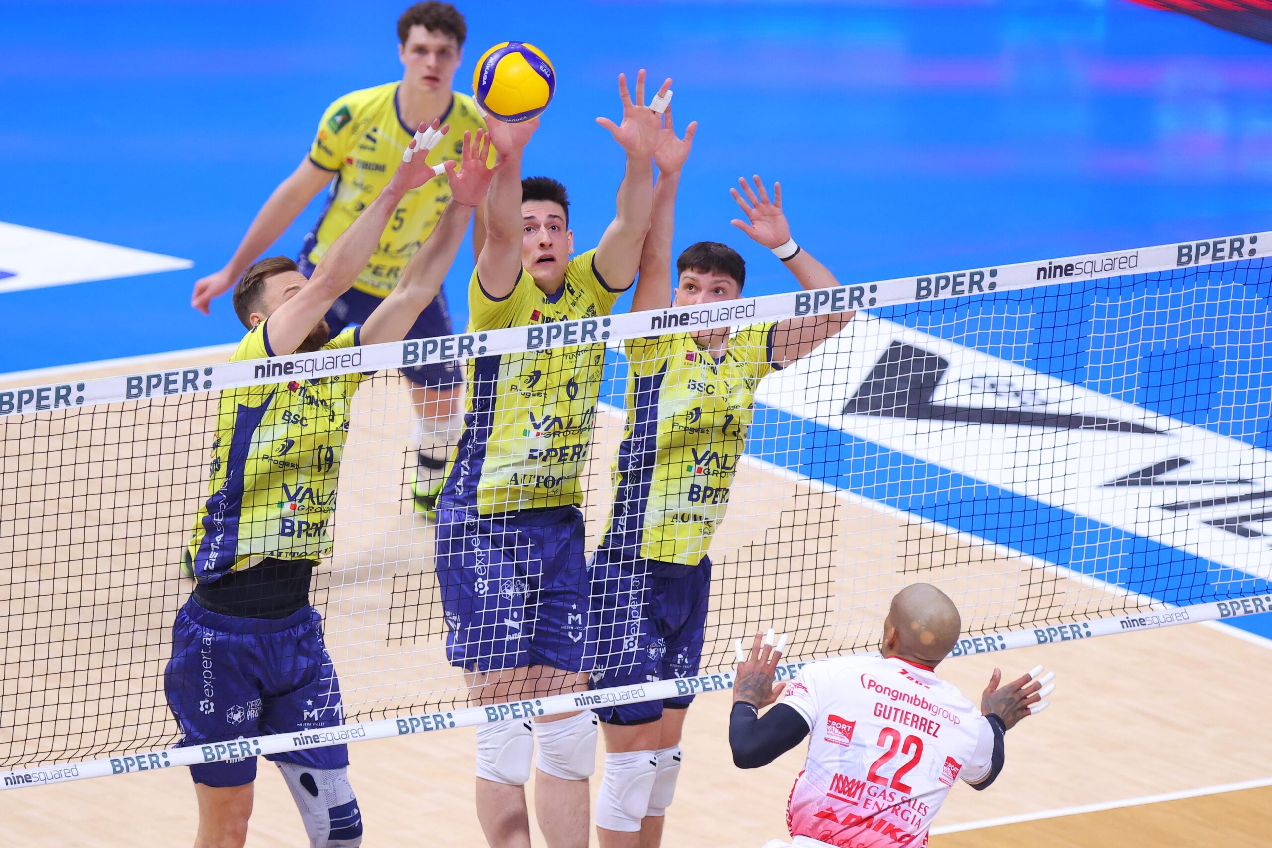 Gas Sales Bluenergy Piacenza: Porro 1, Mandiraci 22, Simon 10, Bovolenta 9, Gutierrez 17, Comparoni 2, Iyegbekedo (L), Pace (L), Galassi 4, Bergmann 0, Loreti 0. N.E. Leon, Travica, Andringa. All. Boninfante.