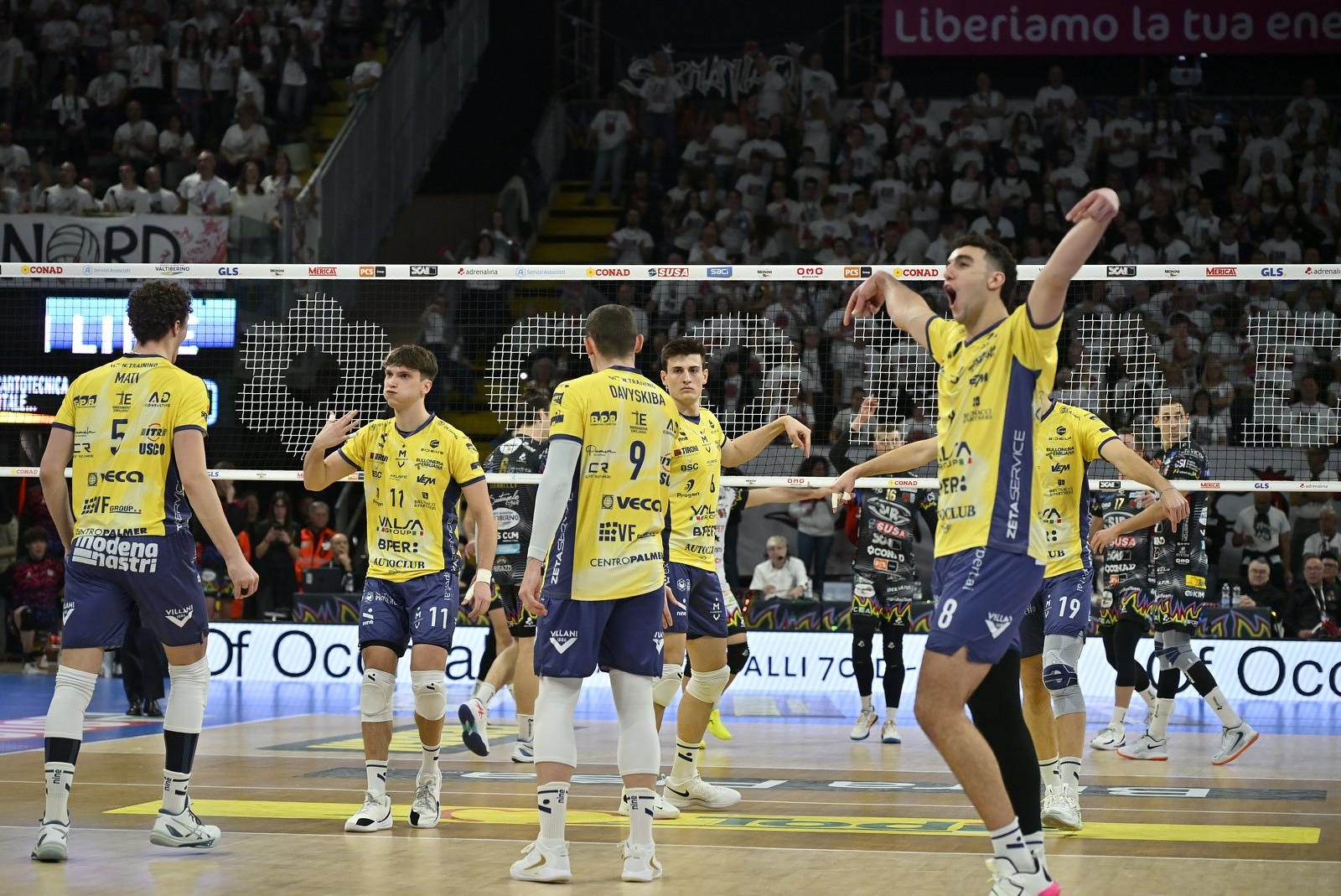 La Valsa Group parte con il sestetto composto da Tizi-Oualou-Buchegger in diagonale principale, Davyskiba-Porro di banda, Sanguinetti-Mati al centro con Perry libero. Perugia risponde con Giannelli al palleggio, Ben Tara opposto, Ishikawa-Semeniuk martelli, Loser-Russo centrali con Colaci libero. Parte il match ed è subito punto a punto, 7-7. Modena piazza il break, 9-11 con Luca Porro protagonista. Cambia marcia la Sir, che mette la freccia e va sul 18-17. Il muro di Porro porta i gialli al 20-20 poi è Davyskiba a guidare Modena al 25-25. Perugia chiude 27-25 il primo parziale. Nel secondo set si va sul 5-5 con le due squadre che forzano al servizio. Continua l’equilibrio, 12-12 con Perry che si esalta al PalaBarton. Sanguinetti mette il 14-18 per una Modena che gioca un grande volley contro una grande squadra. Pardo Mati chiude 19-25 il secondo set. Nel terzo set Perugia va sul 10-8 con Giannelli che trova bene i suoi avanti. Si arriva al 18-15 con Modena che non molla nulla, poi Perugia chiude 25-21 il parziale. Nel quarto set si alza ancora il ritmo, 11-9 e Modena resta in scia. Cambia passo Perugia, che non sbaglia praticamente nulla e chiude 25-20 il set e 3-1 il match. La prossima gara di Modena Volley mercoledì sera al PalaPanini con Trento.