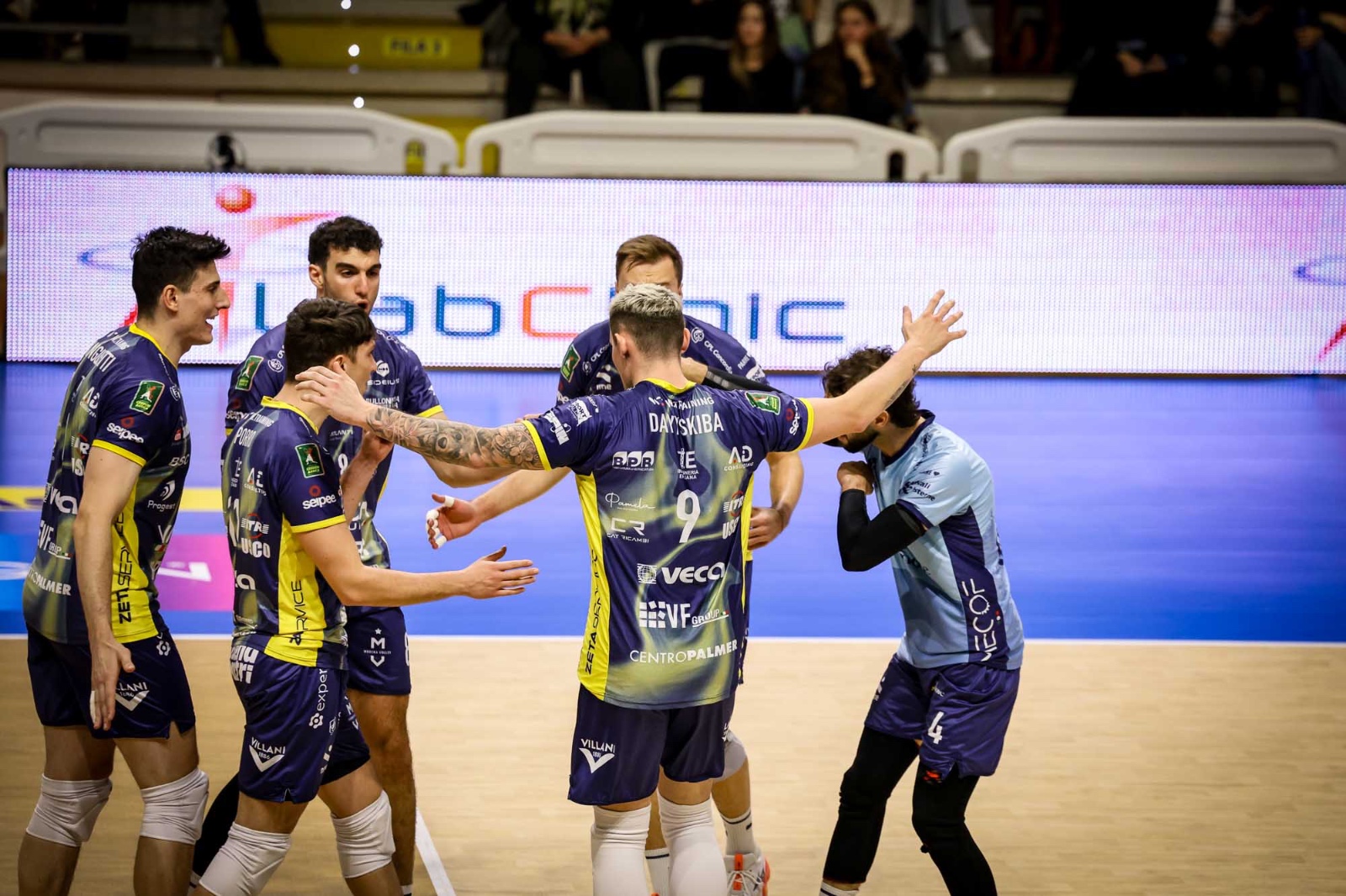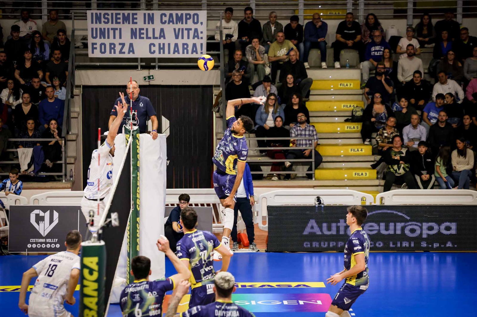Modena parte con il sestetto composto da Tizi-Oualou-Buchegger in diagonale principale, Davyskiba-Porro di banda, Sanguinetti-Anzani al centro con Perry libero. Cisterna risponde con Fanizza al palleggio, Guzzo opposto, Bayram-Lanza martelli, Mazzone-Plak centrali con Currie libero. Avvio equilibrato, ace di Buchegger e 8-8 dopo i primi scambi. Si prosegue punto a punto, tocco di seconda vincente di Tizi-Oualou e 16-17. Entrambe le squadre lottano fino alla fine, sono i padroni di casa a conquistare il primo set sfruttando l’errore di Porro: 26-24 e 1-0. Cisterna comincia forte nel secondo parziale, ace di Bayram per il 6-3 e timeout Giuliani. Modena reagisce e torna prepotentemente in partita anche grazie ai giocatori subentrati dalla panchina, prima l’attacco vincente di Ikhbayri e poi l’ace di Davyskiba per il 14-17 con timeout Morato. I gialloblù continuano a spingere: Ikhbayri è incontenibile in attacco, 17-22. Davyskiba chiude il set a favore di Modena, 19-25 e 1-1. La formazione di Giuliani inizia bene nel terzo parziale, Porro non sbaglia e 6-10 con timeout Cisterna. Modena aumenta ulteriormente il proprio vantaggio con Porro protagonista in battuta, 8-15 e timeout Morato. I gialloblù non mollano di un centimetro, due ace consecutivi di Davyskiba e 11-20. Modena mantiene alto il livello di attenzione fino alla fine di un set senza storia, 16-25 e 1-2. La compagine di Giuliani comincia il quarto parziale con il piede sull’acceleratore, muro di Mati su Lanza e 1-6 con timeout Morato. Modena si mantiene avanti, primo tempo di Anzani e 12-15. Cisterna ritrova la parità sul 22-22, poi si gioca punto a punto in un finale di set intenso. Modena spreca ben 11 match point e sono i padroni di casa ad ottenere il parziale con il muro di Plak su Ikhbayri, 37-35 e 2-2. Nel tie-break, Cisterna alza la voce e completa la rimonta: 15-11 e 3-2 finale. Modena tornerà in campo domenica 23 novembre (ore 16) in trasferta a Cuneo.