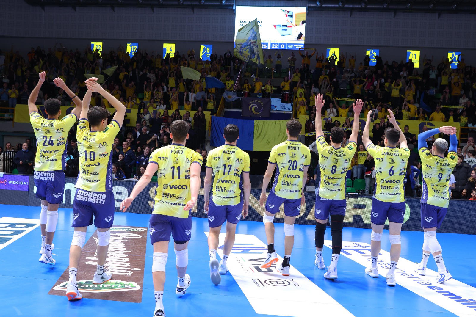 Modena parte con il sestetto composto da Tizi-Oualou-Buchegger in diagonale principale, Davyskiba-Porro di banda, Sanguinetti-Mati al centro con Perry libero. Milano risponde con Cachopa al palleggio, Reggers opposto, Recine-Ichino martelli, Di Martino-Caneschi centrali con Catania libero. I padroni di casa iniziano bene, parallela vincente di Davyskiba per il 7-4 e timeout Piazza. I gialloblù spingono forte, due ace consecutivi di Porro e 14-8 con altro timeout Piazza. Modena controlla senza particolari problemi e conquista agevolmente il primo set, 25-18 e 1-0. La squadra di Giuliani non molla di un centimetro nemmeno in avvio di secondo parziale, ace di Tizi-Oualou 7-3 e timeout Milano. La formazione ospite risponde colpo su colpo, battuta vincente di Recine e parità ristabilita sul 15-15. Si gioca punto a punto in un finale di set davvero equilibrato ed intenso, ad avere la meglio è Modena grazie a Buchegger decisivo al servizio: 26-24 e 2-0. I gialloblù continuano a proporre il proprio gioco con coraggio e senza paura, ace di Sanguinetti e 11-9 dopo i primi scambi. Porro grande protagonista, due punti consecutivi per lo schiacciatore ligure e 17-15 con timeout Piazza. I padroni di casa alzano la voce: vincono anche il terzo parziale (25-22) e soprattutto il match 3-0. Modena resta al quarto posto in classifica a quota 39 punti e tornerà in campo sabato 14 febbraio (ore 18) in trasferta contro Lube Civitanova.