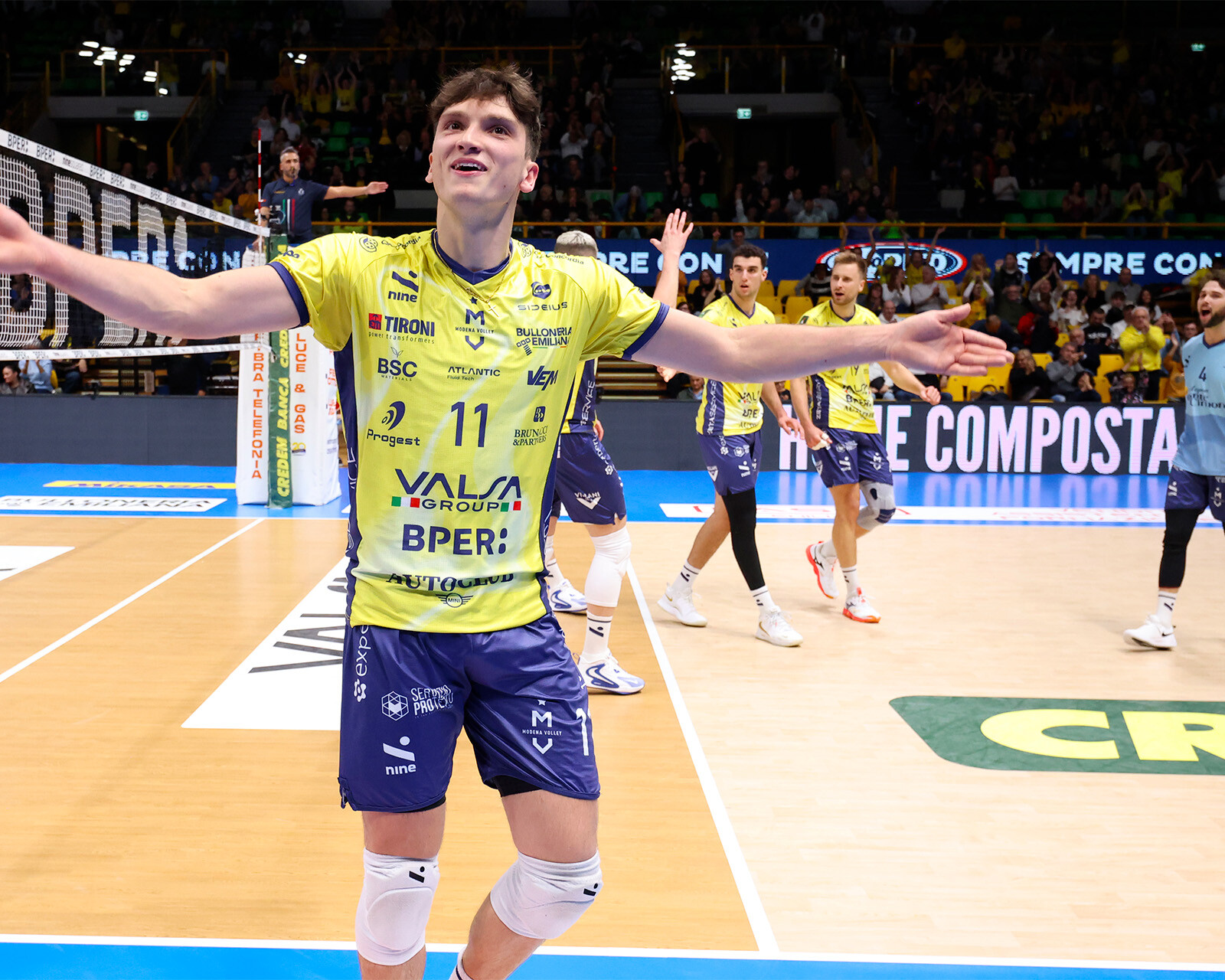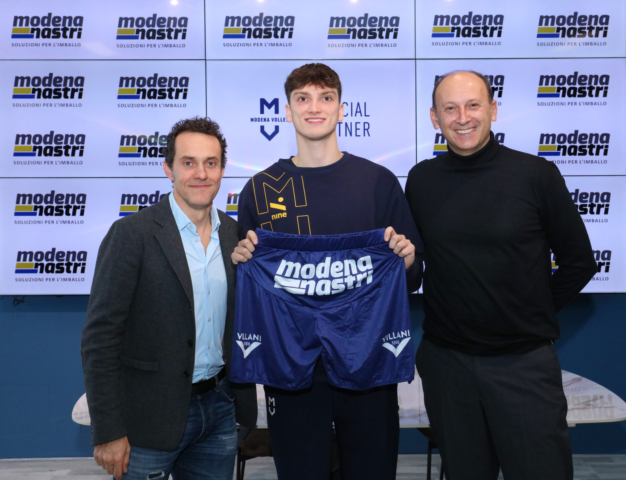Presenti l’amministratore di Modena Nastri Andrea Cargioli, lo schiacciatore gialloblù Luca Porro e il direttore generale di Modena Volley Andrea Sartoretti.