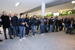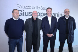 Presenti all’inaugurazione la proprietà di Modena Volley rappresentata dai soci di maggioranza Christian e Michele Storci e dal presidente Giulia Gabana, il Sindaco di Modena Massimo Mezzetti, la famiglia Panini e lo scultore e artista Wainer Vaccari.