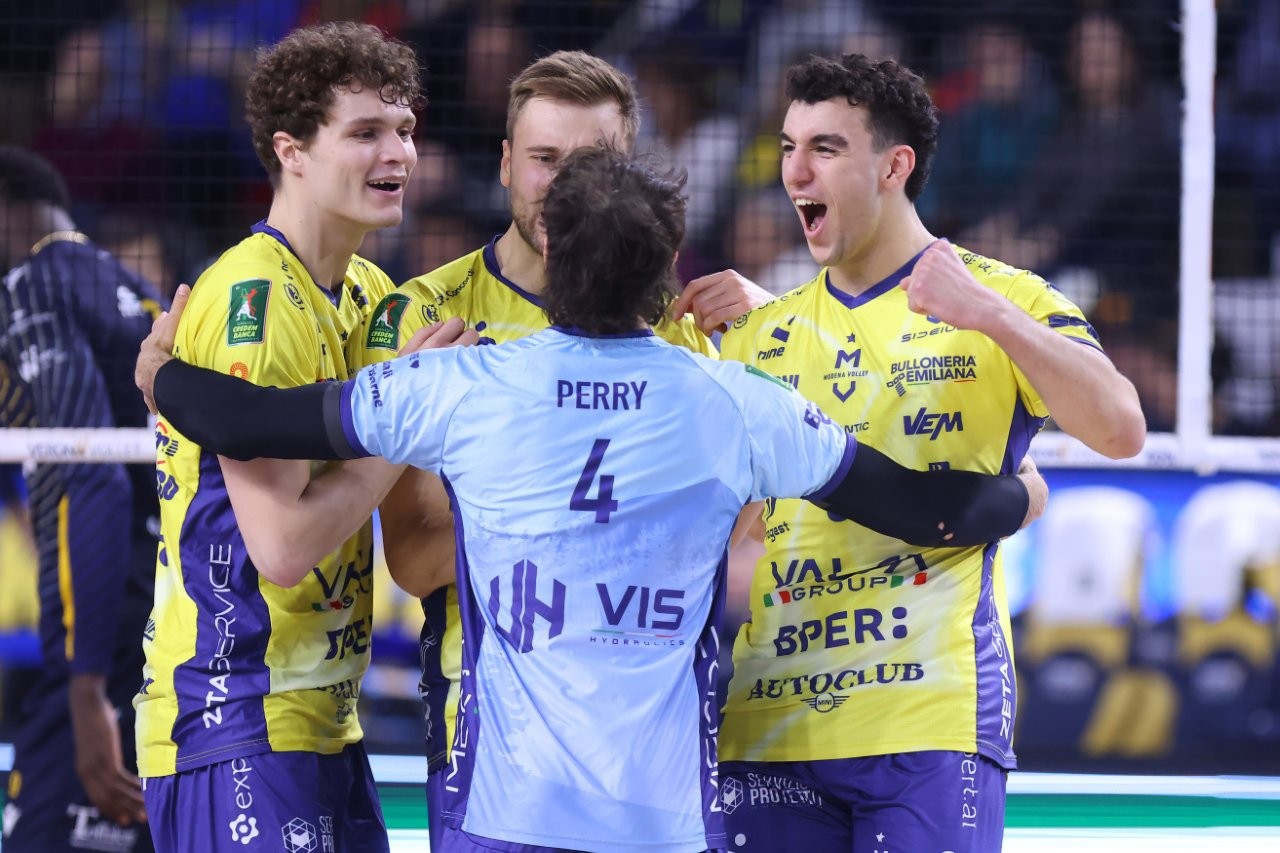 I gialloblù emiliani partono forte, Porro a segno in attacco e 7-10 dopo i primi scambi. La formazione di Giuliani continua a spingere, muro di Sanguinetti su Darlan per il 14-18 e timeout Verona. Porro è scatenato e trascina Modena a suon di punti, poi è Davyskiba a chiudere il set 20-25 per i gialli. Nel secondo parziale parte ancora fortissimo Modena che va sulll’8-10. Non si fermano Anzani e compagni, 13-16 con i gialloblù che tengono bene anche a muro e in difesa. Si arriva al 20-23 poi è l’ace di Buchegger a chiudere il set 24-26. Il terzo parziale vede Rana Verona scappare sul 10-7 con Modena che fatica in fase break. Vanno sul 16-11 Mozic e compagni con Darlan che fa malissimo ai gialli al servizio e in attacco. Non mollano i gialli, 20-15 con il bellissimo duello registi Christenson/Tizi-Oualou. Verona chiude il parziale 25-18, è 1-2 nei set. Nel quarto parziale parte forte Modena poi Verona alza i giri del motore, tre ace di Cortesia ed è 13-11. Non si fermano gli scaligeri, 17-11. Modena cambia marcia, non molla un pallone, si rialza e arriva al sorpasso nel finale di set per poi chiudere 23-25 il quarto set. Modena termina il girone d’andata al quinto posto e affronterà Piacenza al Pala Banca nei quarti di finale di Coppa Italia.