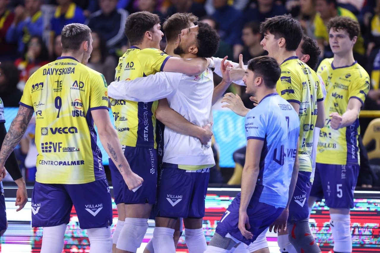 Modena comincia il match con Tizi-Oualou in regia, Buchegger opposto, Davyskiba-Porro in posto 4, Mati-Sanguinetti al centro e Perry libero. Verona schiera Christenson-Darlan in diagonale principale, Keita e Mozic bande, Cortesia-Vitelli centrali e D’Amico libero.